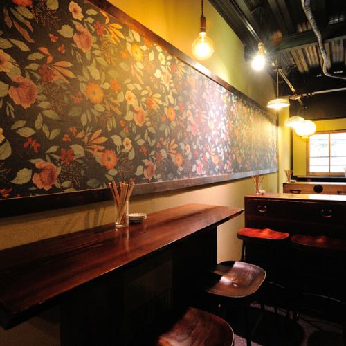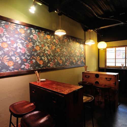 【古民家のような心落ち着く雰囲気】店内は木の温もりを感じられる内装で、まるで古民家のような和モダンな空間です。1~3階まであり、1階はふらりと立ち寄りやすいカウンター席、2階は広々と使えるテーブル席、3階はゆっくりと過ごせる掘りごたつ席と、それぞれ異なるタイプのお席をご用意しております。